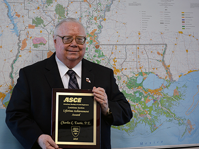 Eustis, who received a 2013 Lifetime Achievement Award in July from the ASCE Baton Rouge Branch, received the same honor from the ASCE Louisiana Section at a ceremony on September 20. This is the second time Eustis is a double honoree for ASCE, previously receiving the 2009 Outstanding Civil Engineer awards from both ASCE’s Baton Rouge Chapter and Louisiana Section.