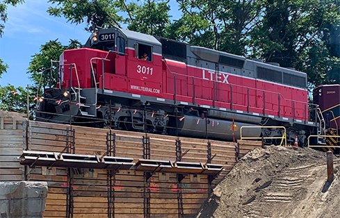 The railway bridge under construction at Pearce Street in Fall River, Massachusetts, is an excellent example of the physical constraints and complex shoring designs required for this project. The team had to design a 25-foot tieback wall to support half the existing bridge during construction, and it had to withstand live train loading directly above. The solution was a micropile and contact lagging wall supported by one level of tiebacks—and built just 21 inches away from the active rail line.