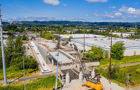 Earlier this month, contractors installed 24 girders for the South 228th Street Bridge in central Kent, Washington. This is one of the final milestones in the City of Kent’s ongoing South 224th/228th Street Corridor project, which will provide a robust new east-west artery to connect Kent’s communities.