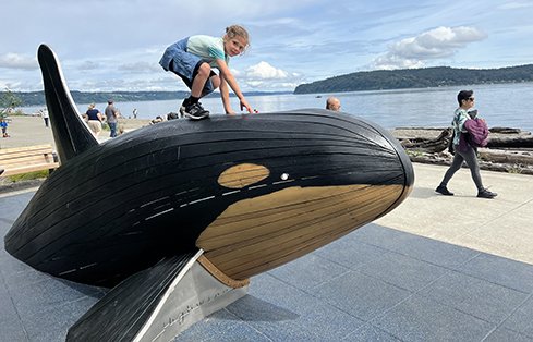 Owen Beach closed for renovations in February 2021 and reopened in June 2022 with a new road and trail entry/exit, an expanded parking lot with ADA-accessible zones, new restrooms, benches, a climbable whale sculpture, and a new facility for community gatherings and science classes. Last year, the project was honored with the Washington Recreation and Park Association’s (WRPA) Park Spotlight Award, and an Award of Honor from the American Society of Landscape Architects (ASLA) Washington.
