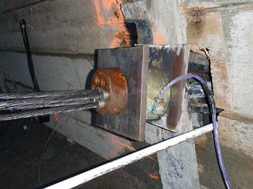 Tieback anchors typically include steel strands installed in a drilled hole and then grouted in place to provide lateral support for excavation shoring. The anchors, once grouted, are stressed using a hydraulic jack to resist lateral loads ranging from tens of kips (one kip = a thousand pounds force) to hundreds of kips.