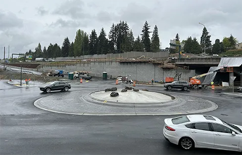 WSDOT is also celebrating the completion of the I-405/Northeast 132nd Street Interchange Project in Kirkland, Washington. The project aimed to improve traffic flow thanks to new ramps, roundabouts, enhanced sidewalks, and bicycle lanes. A GeoEngineers team provided geotechnical services including seismic analysis and recommendations for soldier pile and soil nail walls, culverts, and cast-in-place walls. Unique features of this project include three fish passage structures. One of these challenging structures was constructed between bridge footings, which required unique tieback and strut pile walls to support grade changes and the bridge footings.